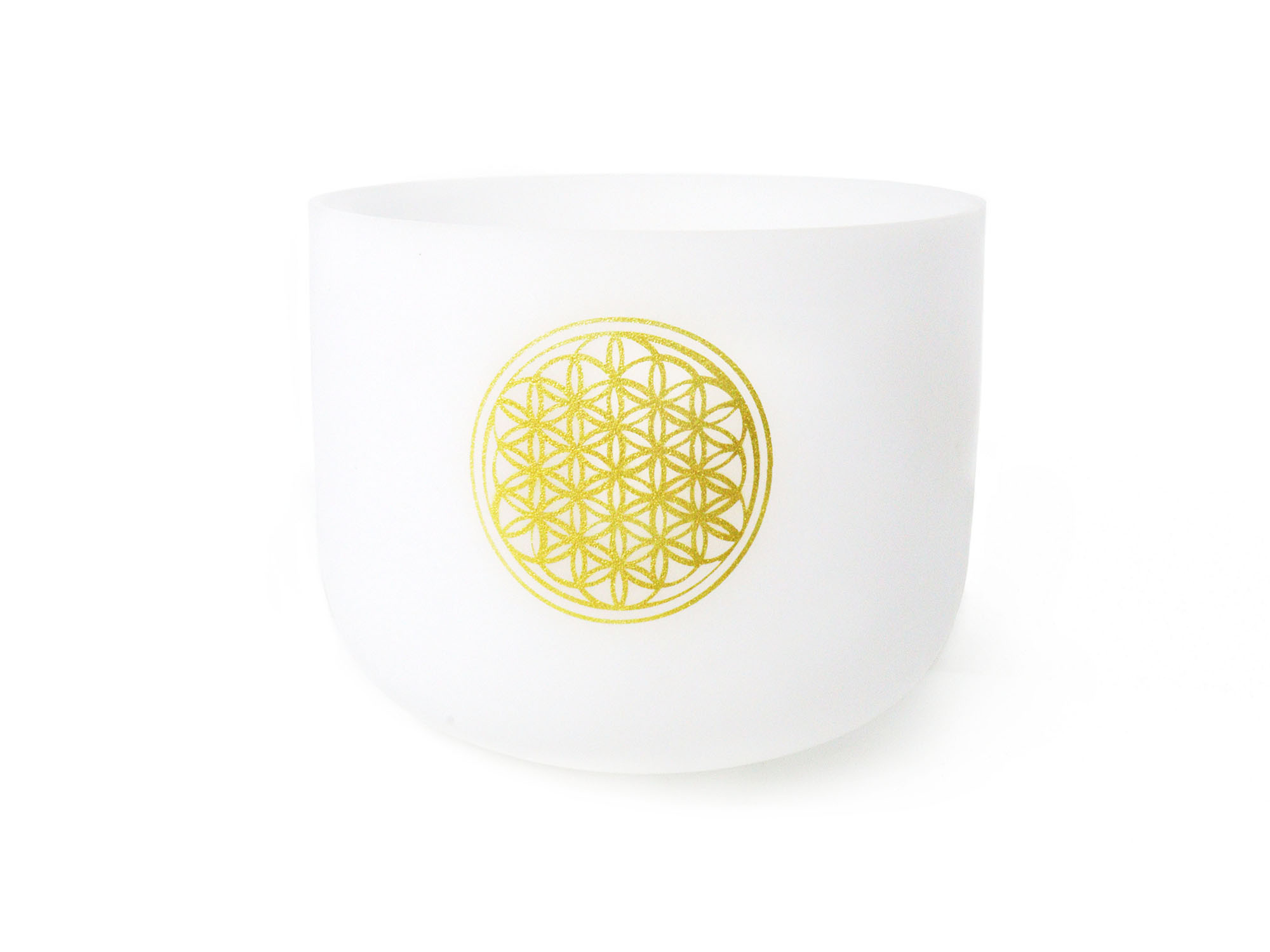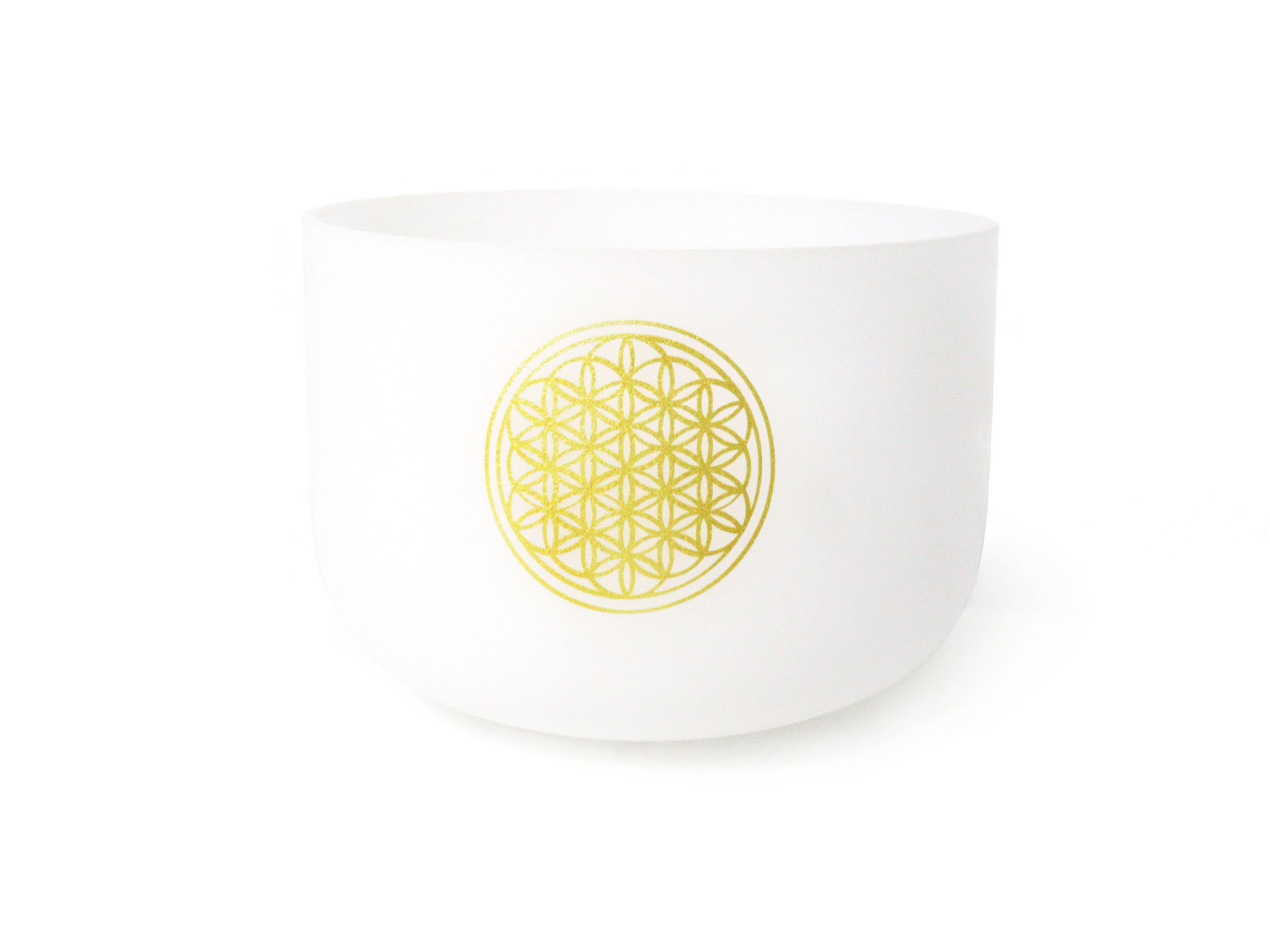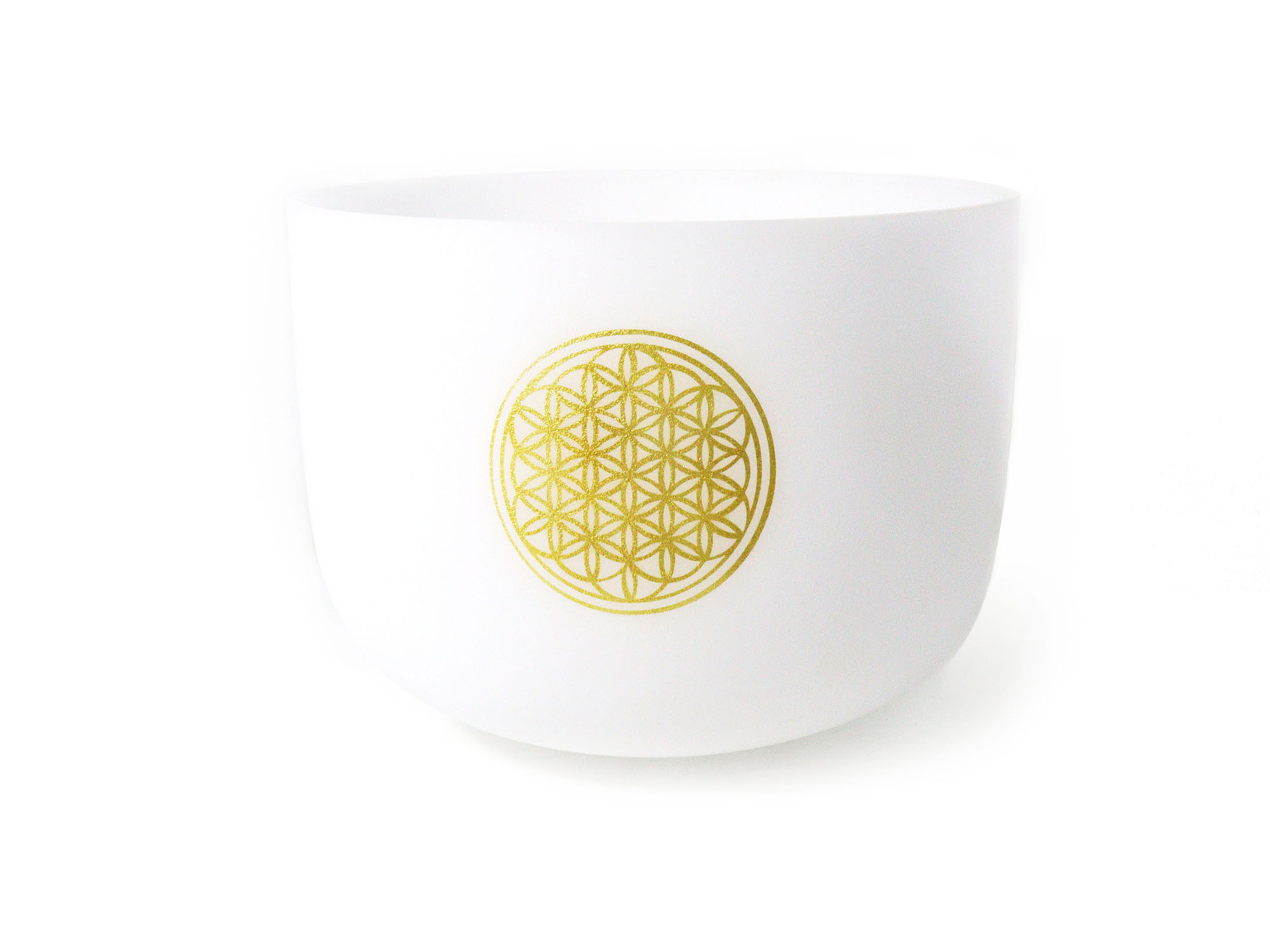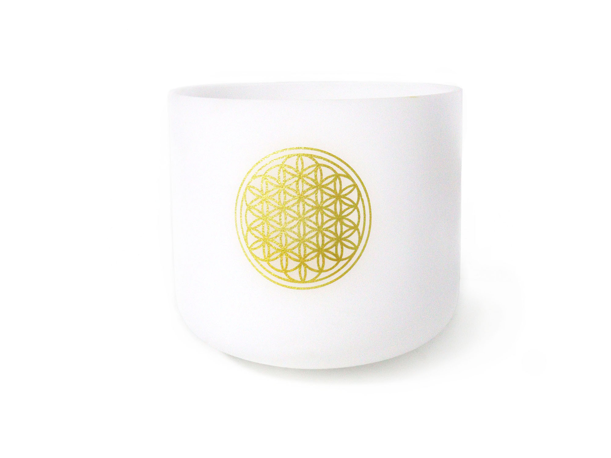 The Flower of Life White Frosted Quartz Crystal Singing Bowl is made of the highest purity quartz and features a beautiful Flower of Life design adorning the front of the bowl. Meditation and reflection on this symbol can bring deep healing and knowledge. When the singing bowl is gently tapped or rubbed, its long-lasting spherical tone spreads evenly so that the energy can be felt throughout the entire surroundings.